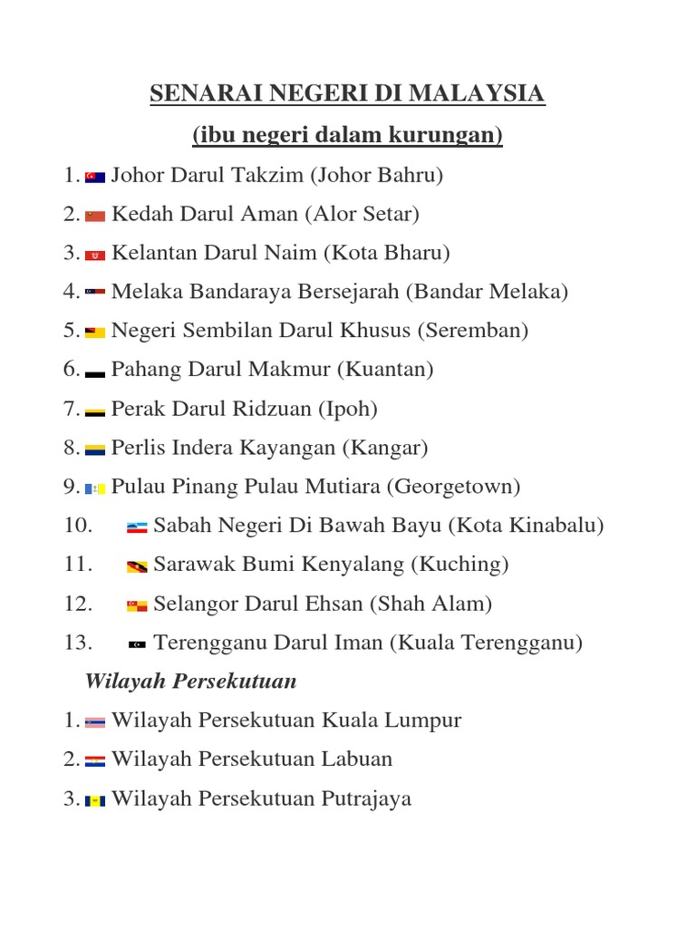 Berikut ini adalah nama ibu kota dari negara malaysia dari benua asia Nama ibu kota negara malaysia, vietnam, myanmar dan filipina adalah. Namun beberapa negara ini memiliki lebih dari satu ibu kota. Documents similar to senarai nama ibu negeri di malaysia. Ibu negara merujuk kepada bandar pentadbiran bagi sesuatu negara.